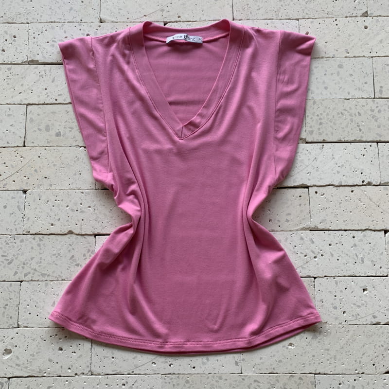 BLUSA LISA SEM MANGA DECOTE V ROSA