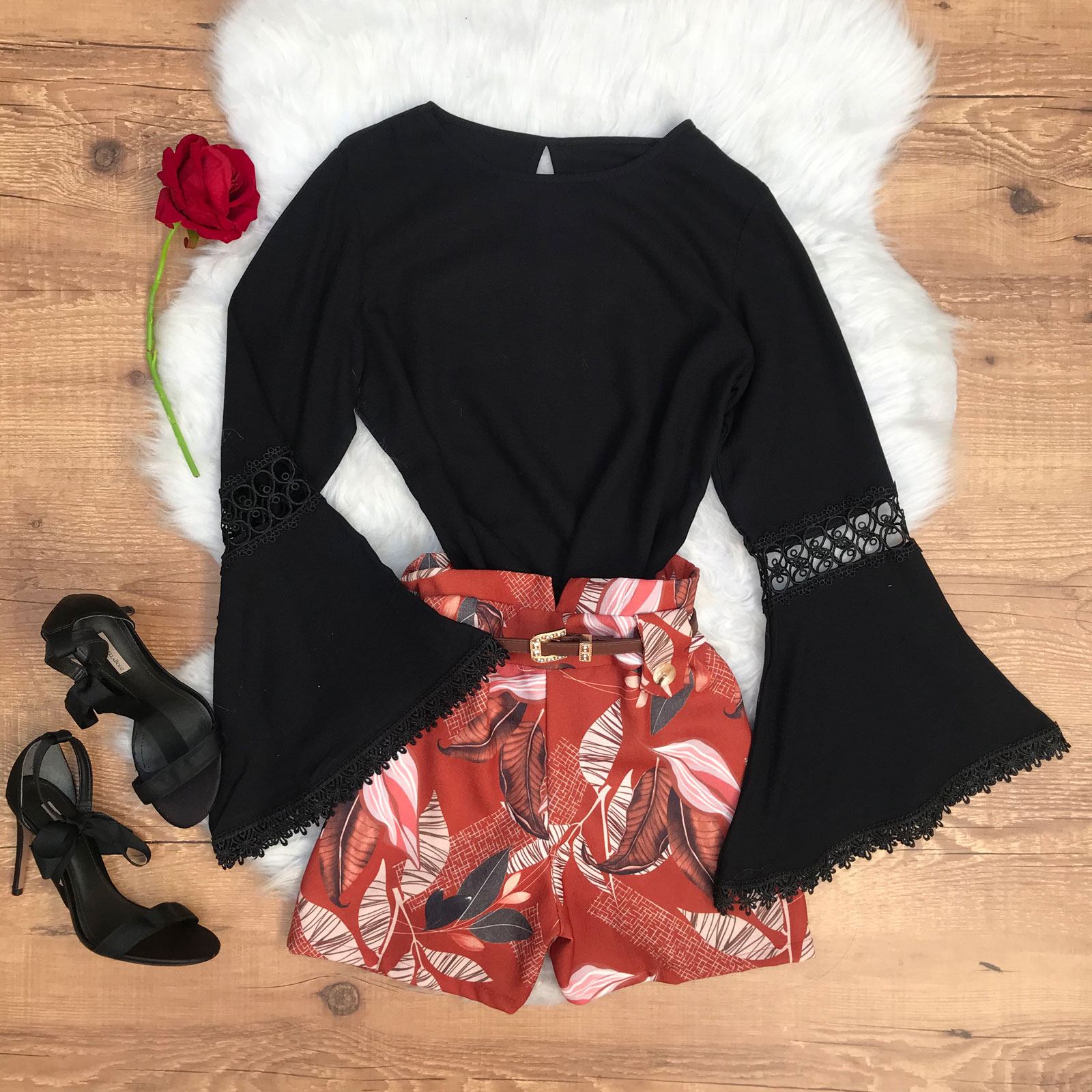 BLUSA MANGA FLARE COM GRIPIER PRETA