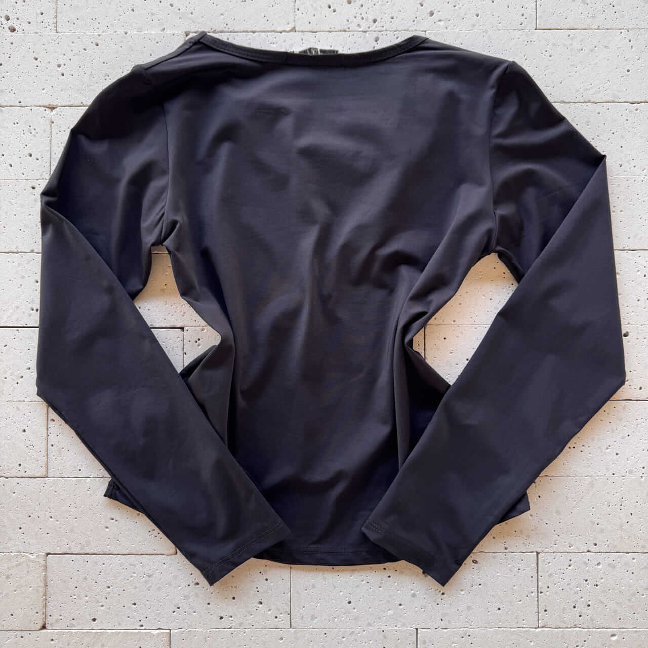 BLUSA MANGA LONGA COM ABERTURA E FIVELA NO OMBRO PRETA