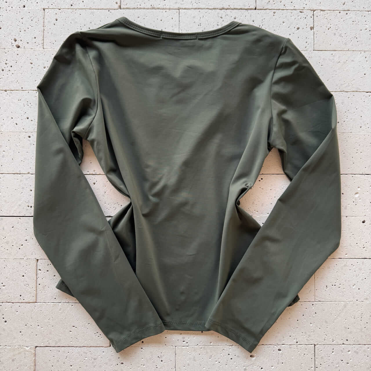 BLUSA MANGA LONGA COM ABERTURA E FIVELA NO OMBRO VERDE OLIVA