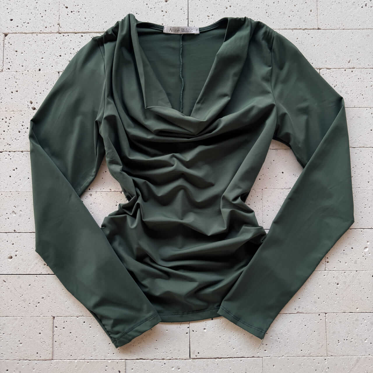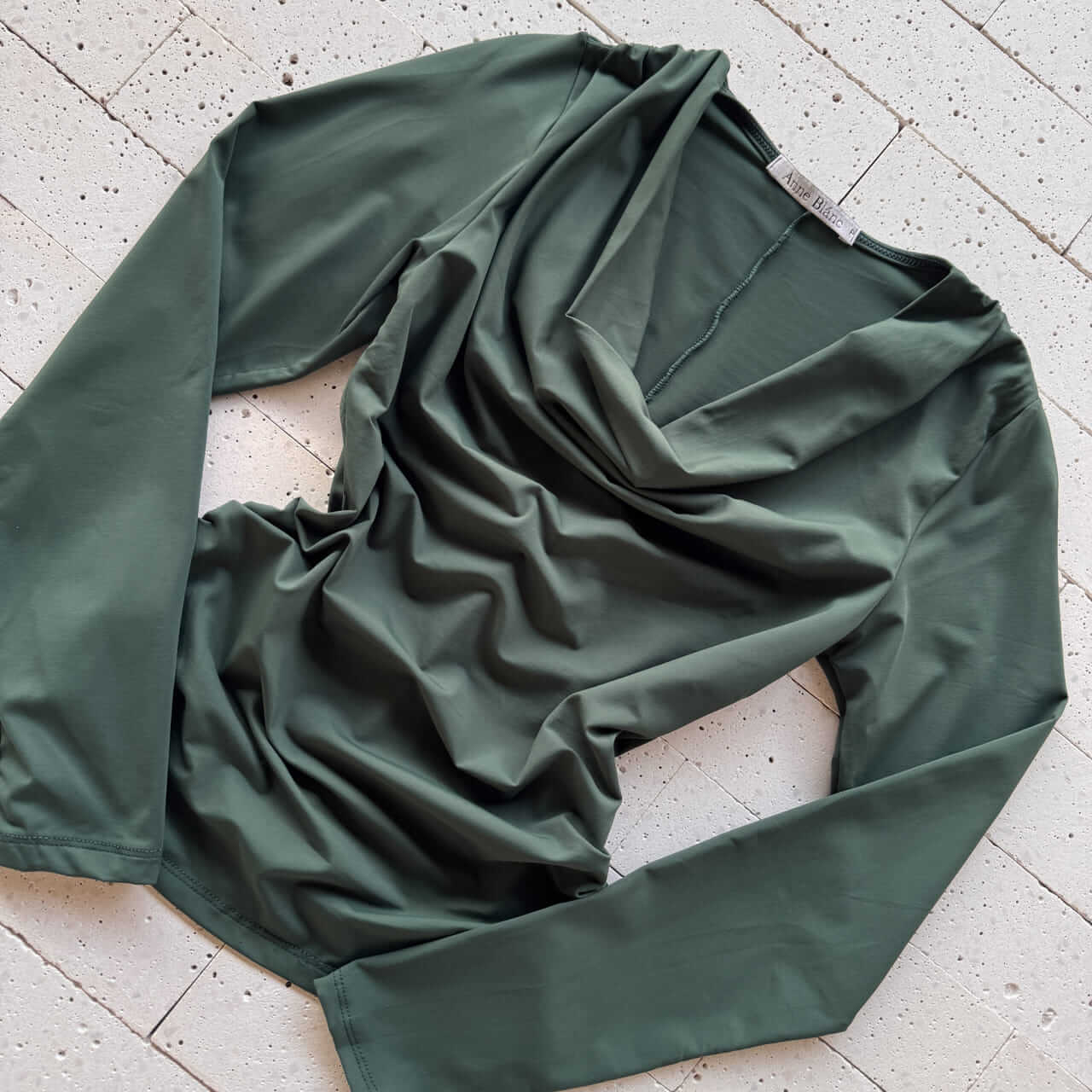 BLUSA MANGA LONGA DECOTE DEGAGÊ VERDE OLIVA – Elegância Moderna com Toque Natural