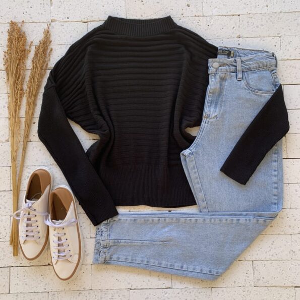 Blusa Modal Canelada Manga Longa Preta – Elegância e Conforto na Dondoca