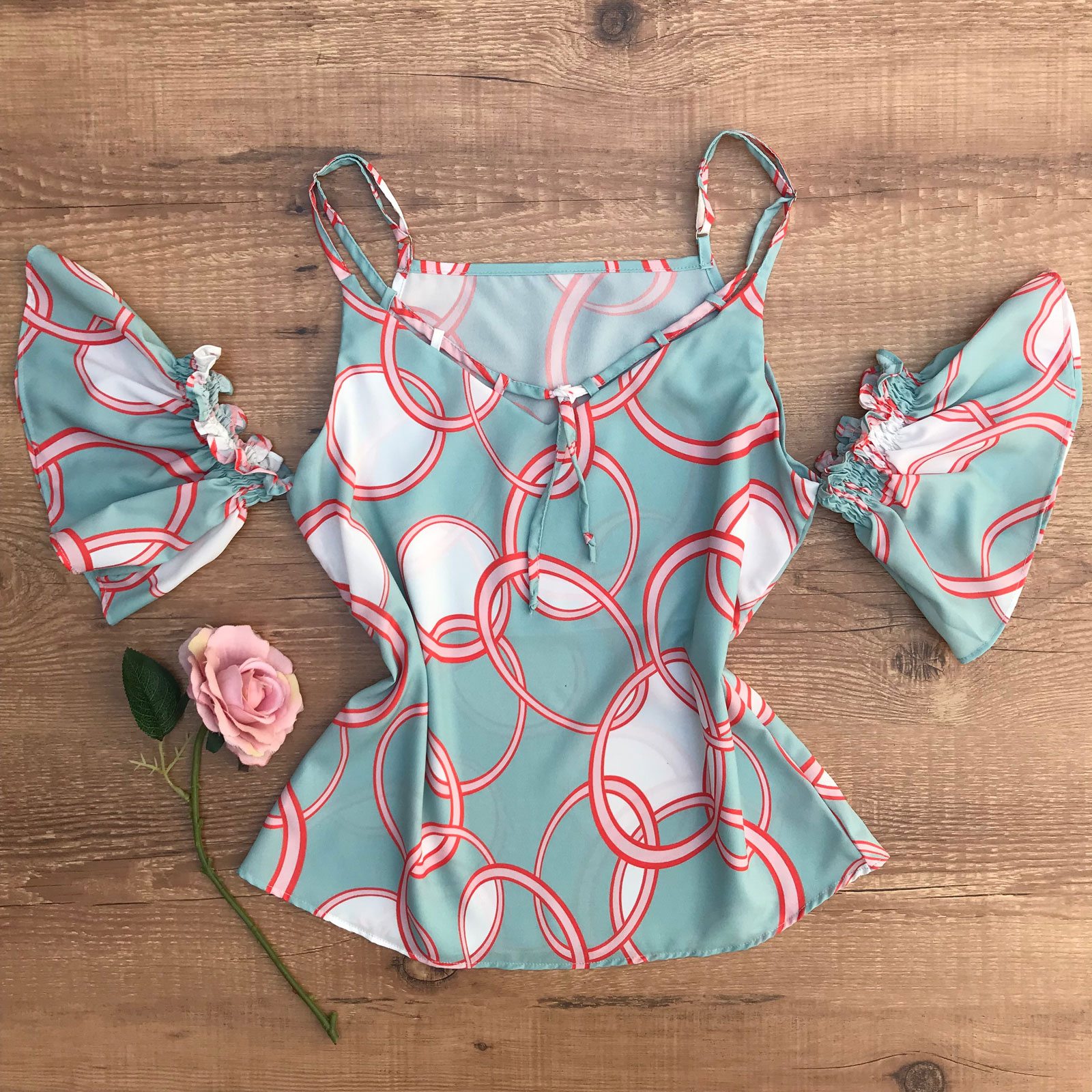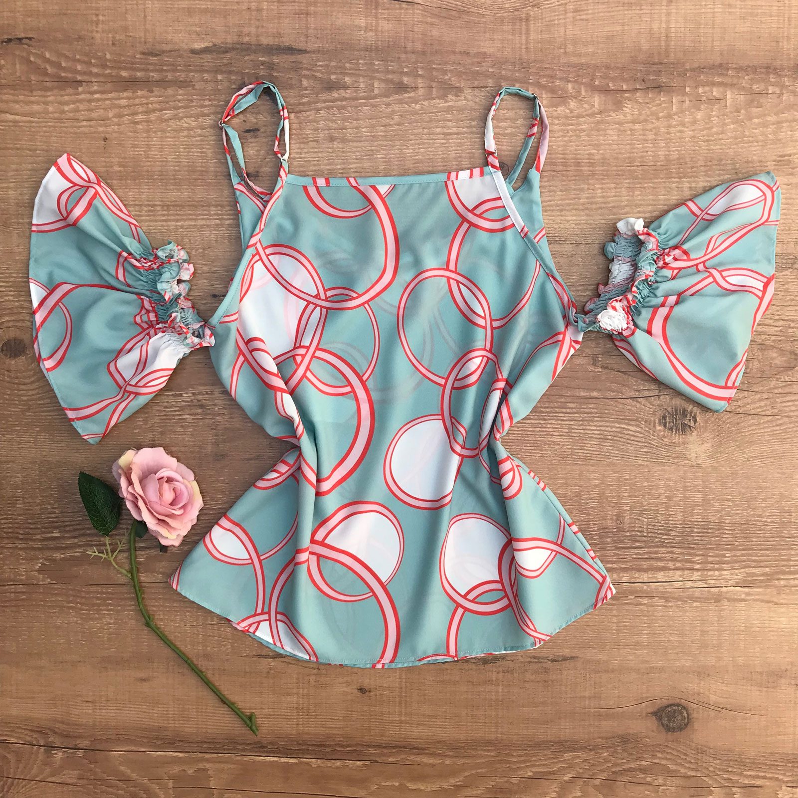 BLUSA OMBRO ABERTO MANGA COM LASTEX VERDE