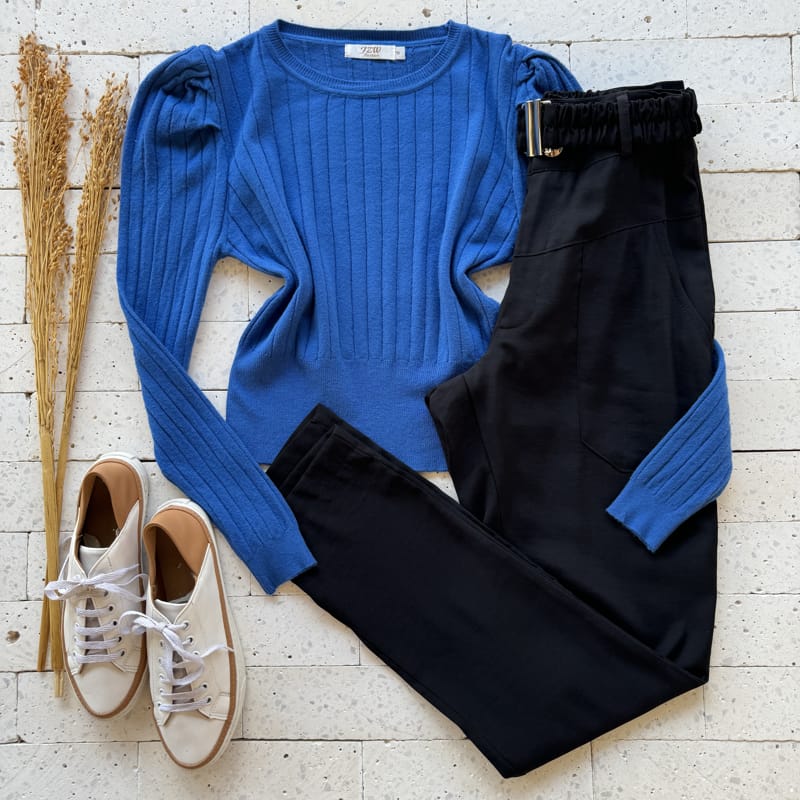 BLUSA PRINCESA MODAL CANELADO MANGA LONGA AZUL BIC
