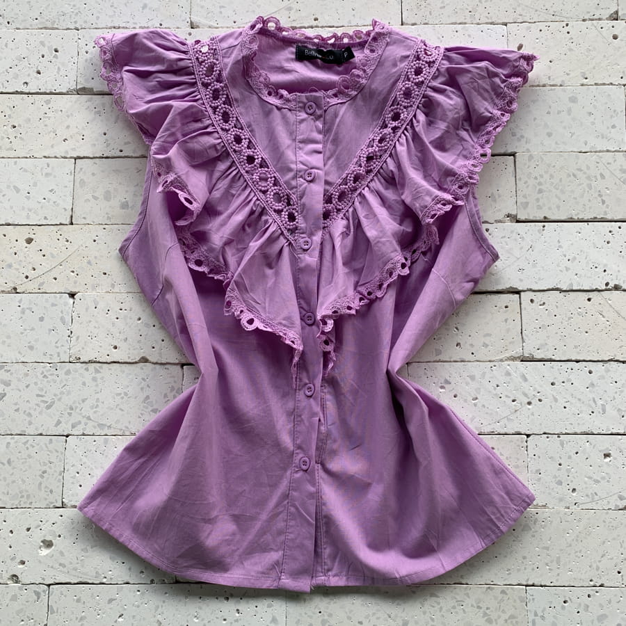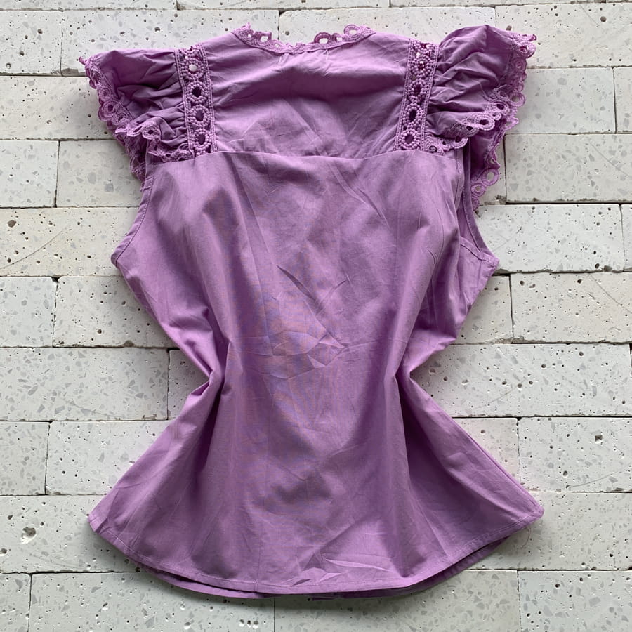BLUSA SEM DECOTE DETALHES BABADOS E GRIPIER LAVANDA