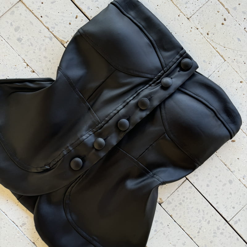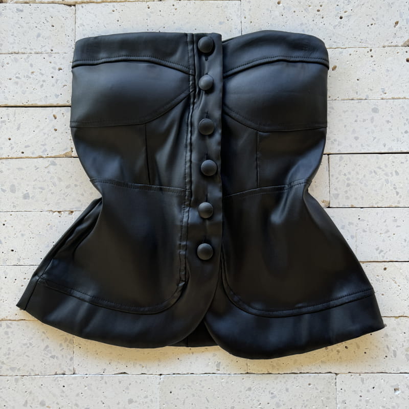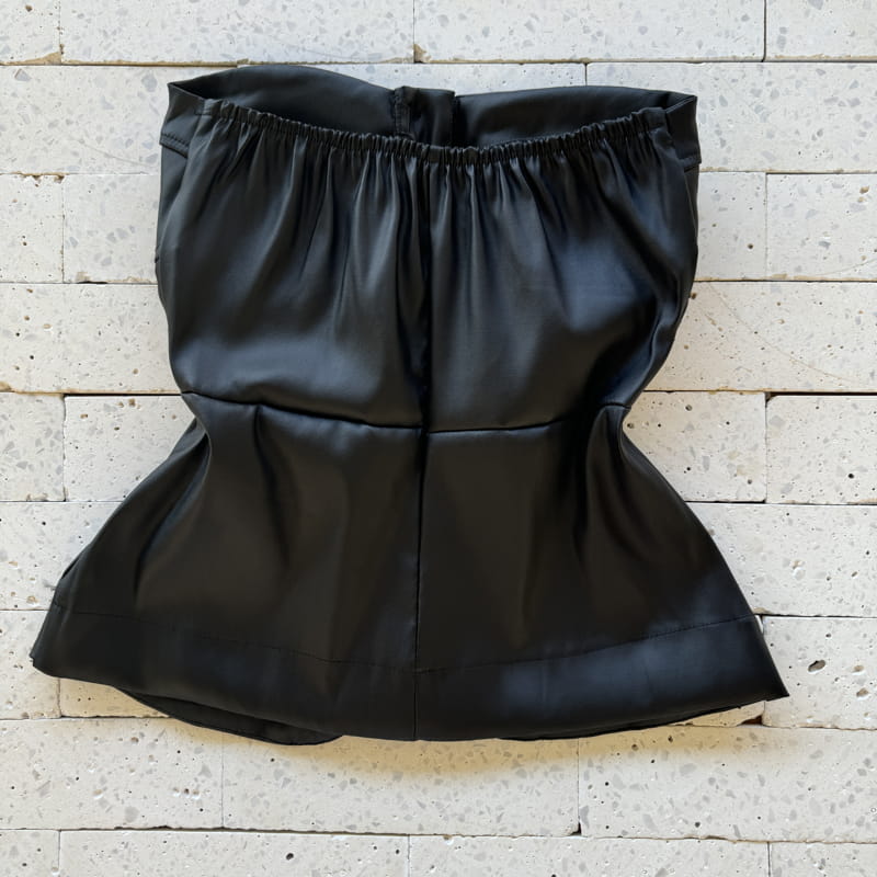 BLUSA TOMARA QUE CAIA DE COURO SINTÉTICO PRETA
