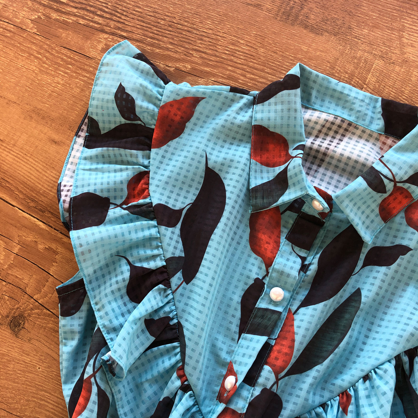 BLUSA TRANSPARENCIA ESTAMPADA COM BABADOS AZUL