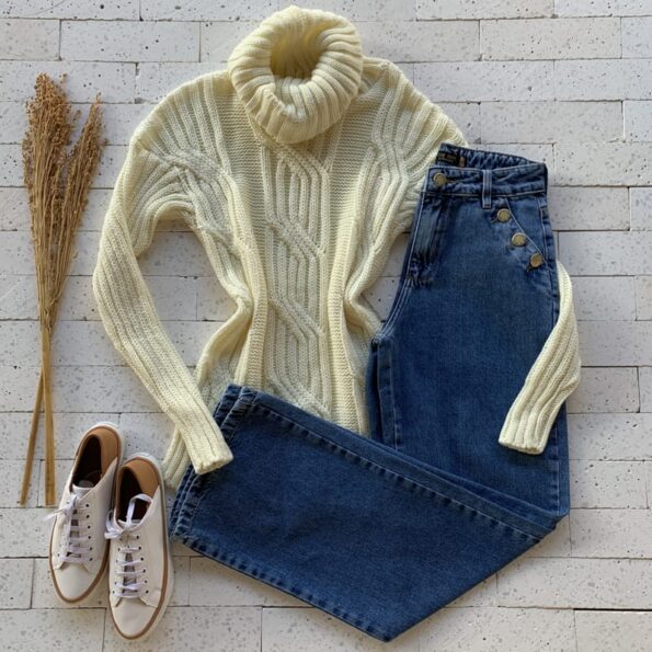 Como Usar o BLUSA TRICO ALONGADA PREMIUM GOLA ALTA DETALHE TRAMA CREME 2.0