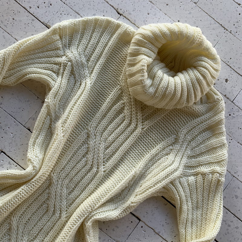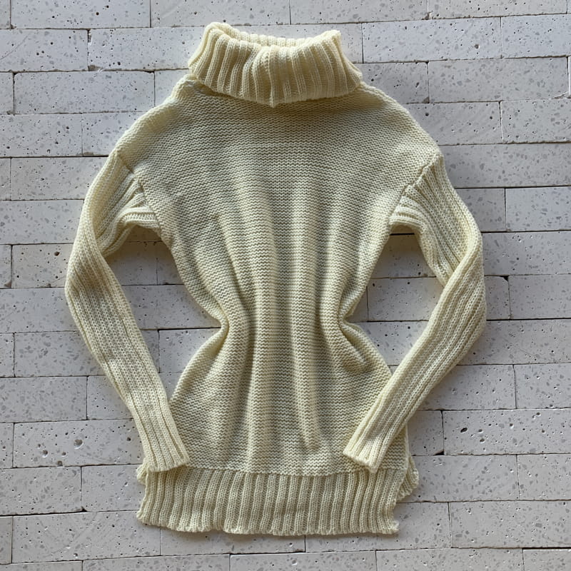 BLUSA TRICO ALONGADA PREMIUM GOLA ALTA DETALHE TRAMA CREME 2.0