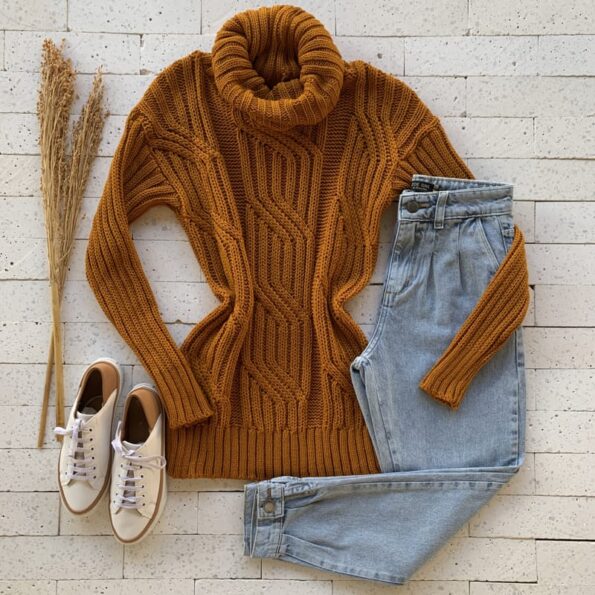 Como Usar a BLUSA TRICO ALONGADA PREMIUM GOLA ALTA DETALHE TRAMA MOSTARDA