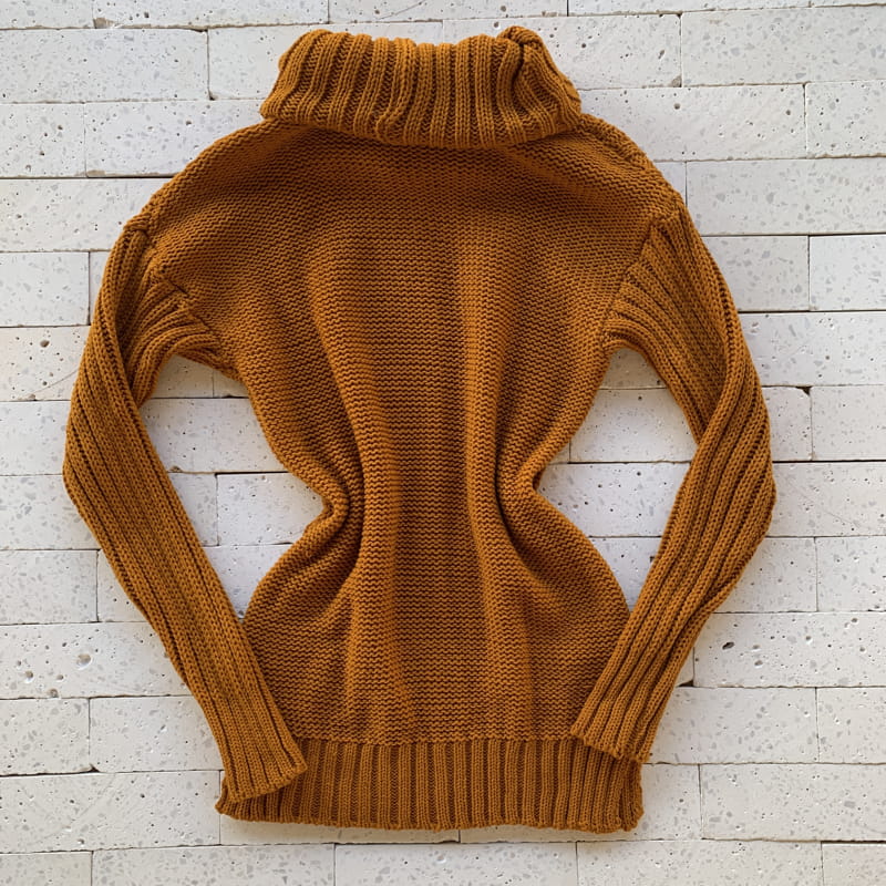 BLUSA TRICO ALONGADA PREMIUM GOLA ALTA DETALHE TRAMA MOSTARDA