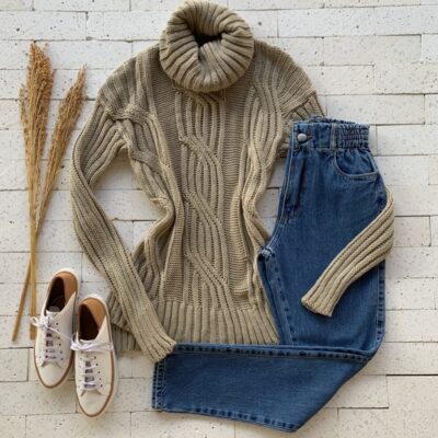 Como Usar o BLUSA TRICO ALONGADA PREMIUM GOLA ALTA DETALHE TRAMA NUDE