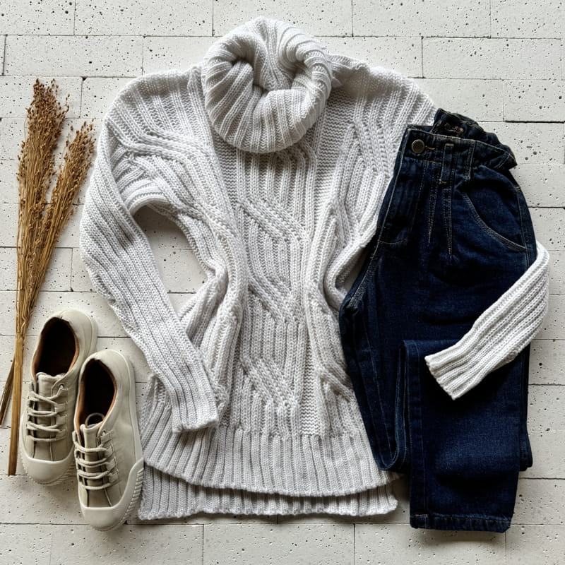 Combine com calças jeans de cintura alta, saias midi ou leggings para um visual confortável e sofisticado. Para um look de inverno completo, adicione um casaco oversized ou um colete alongado e finalize com botas de cano alto ou tênis para uma pegada urbana. Ideal para ocasiões casuais, passeios ou até mesmo para o trabalho em dias frios.