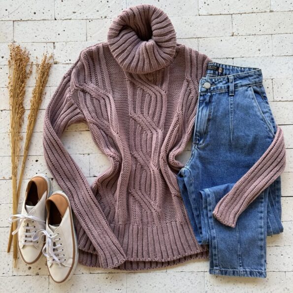 BLUSA TRICO ALONGADA PREMIUM GOLA ALTA DETALHE TRAMA ROSA QUEIMADO – Estilo e conforto para os dias frios