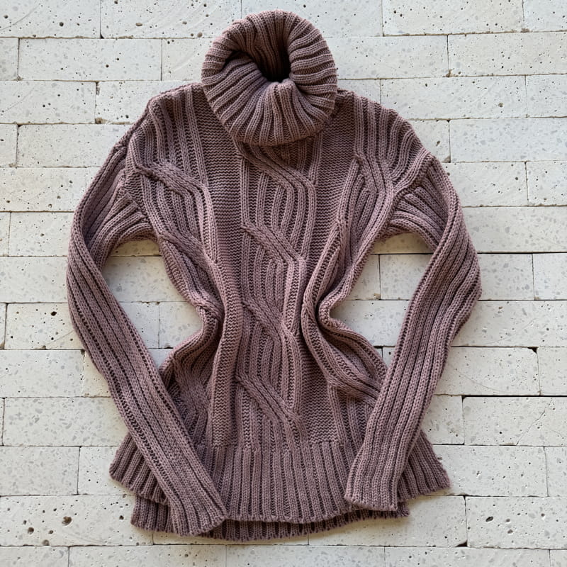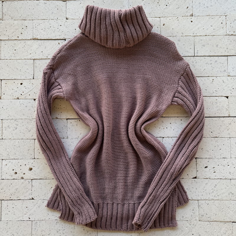 BLUSA TRICO ALONGADA PREMIUM GOLA ALTA DETALHE TRAMA ROSA QUEIMADO