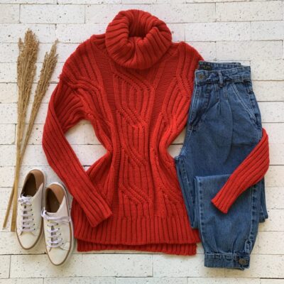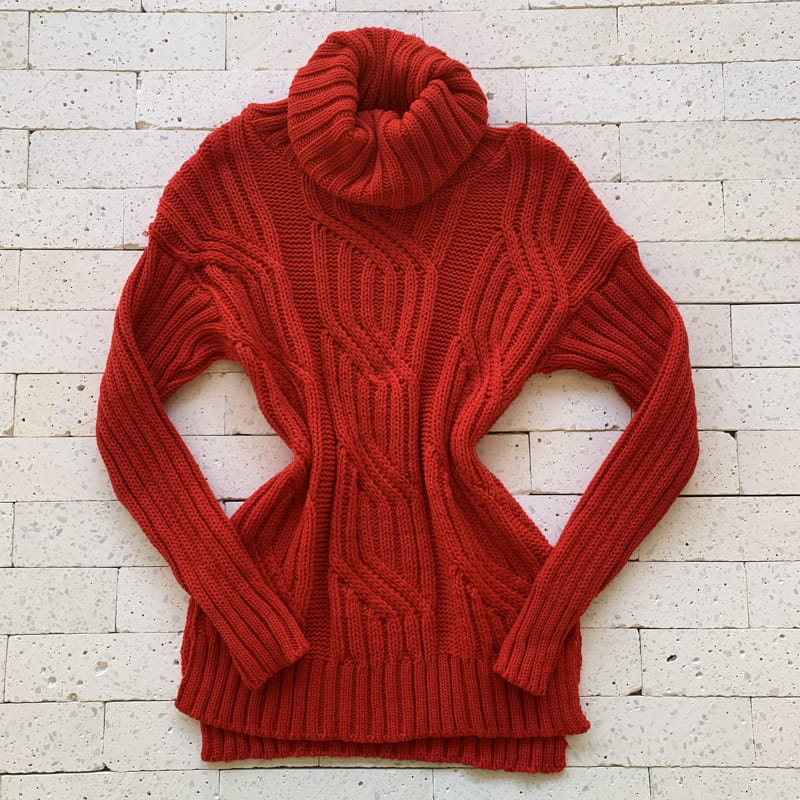 BLUSA TRICÔ ALONGADA PREMIUM GOLA ALTA DETALHE TRAMA VERMELHO – Estilo e Conforto para Dias Frios