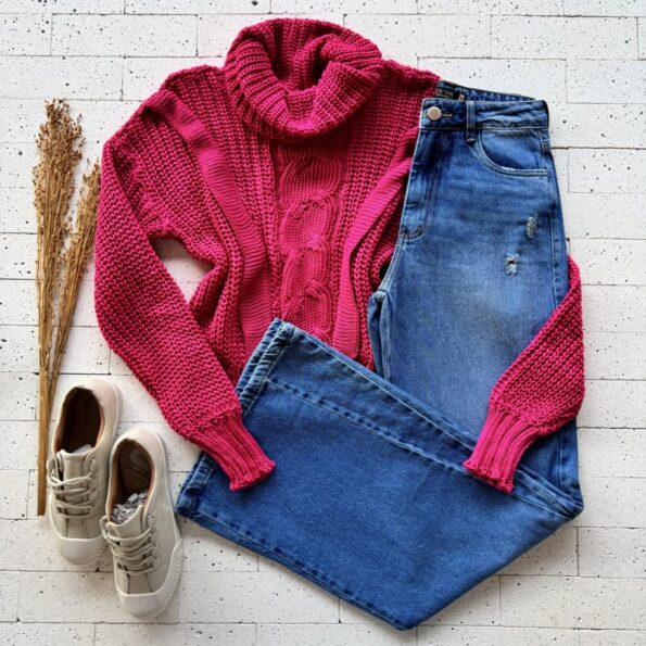 Para quem busca um visual moderno e cheio de personalidade nos dias frios, a Blusa Tricô Babados e Gola Boba Pink é a escolha perfeita. Com modelagem levemente ajustada, essa peça apresenta babados estruturados em destaque, gola boba volumosa e tranças centrais que valorizam o busto. O tom pink vibrante traz feminilidade e estilo, enquanto o tricô encorpado oferece conforto térmico e um toque macio.