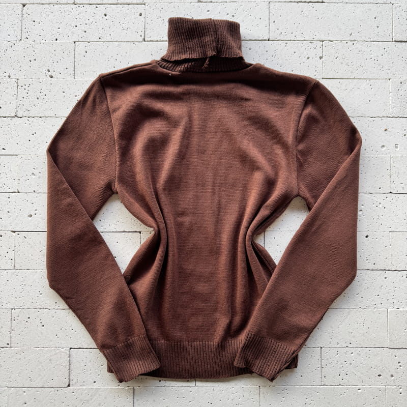 BLUSA TRICO BASIC GOLA ALTA MARROM