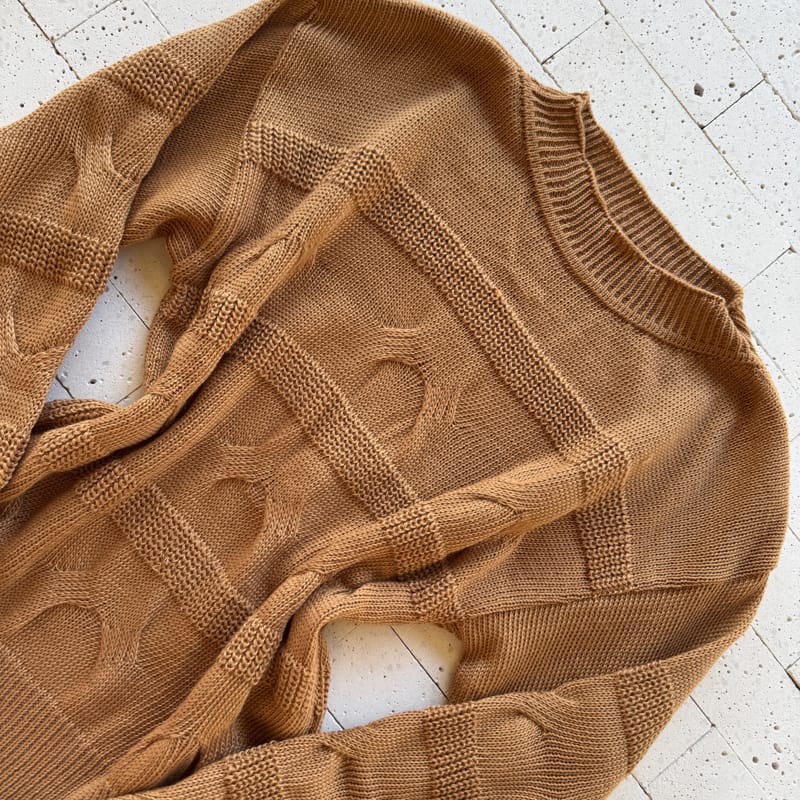 O tom nude desta blusa de tricô traz elegância discreta, enquanto as faixas texturizadas e relevos em meia-lua adicionam sofisticação ao visual. A gola redonda estruturada, os punhos franzidos e a barra canelada larga garantem ajuste impecável. Confeccionada em fio 100 % poliéster, a peça possui toque macio e leve elasticidade, proporcionando conforto do 36 ao 46.