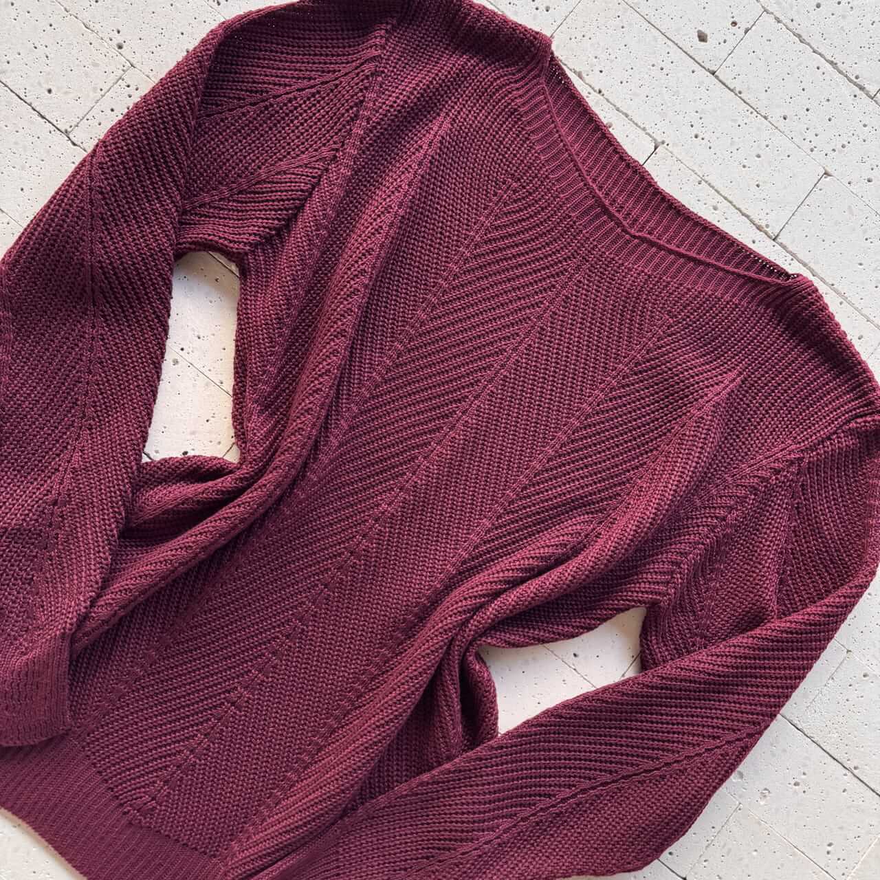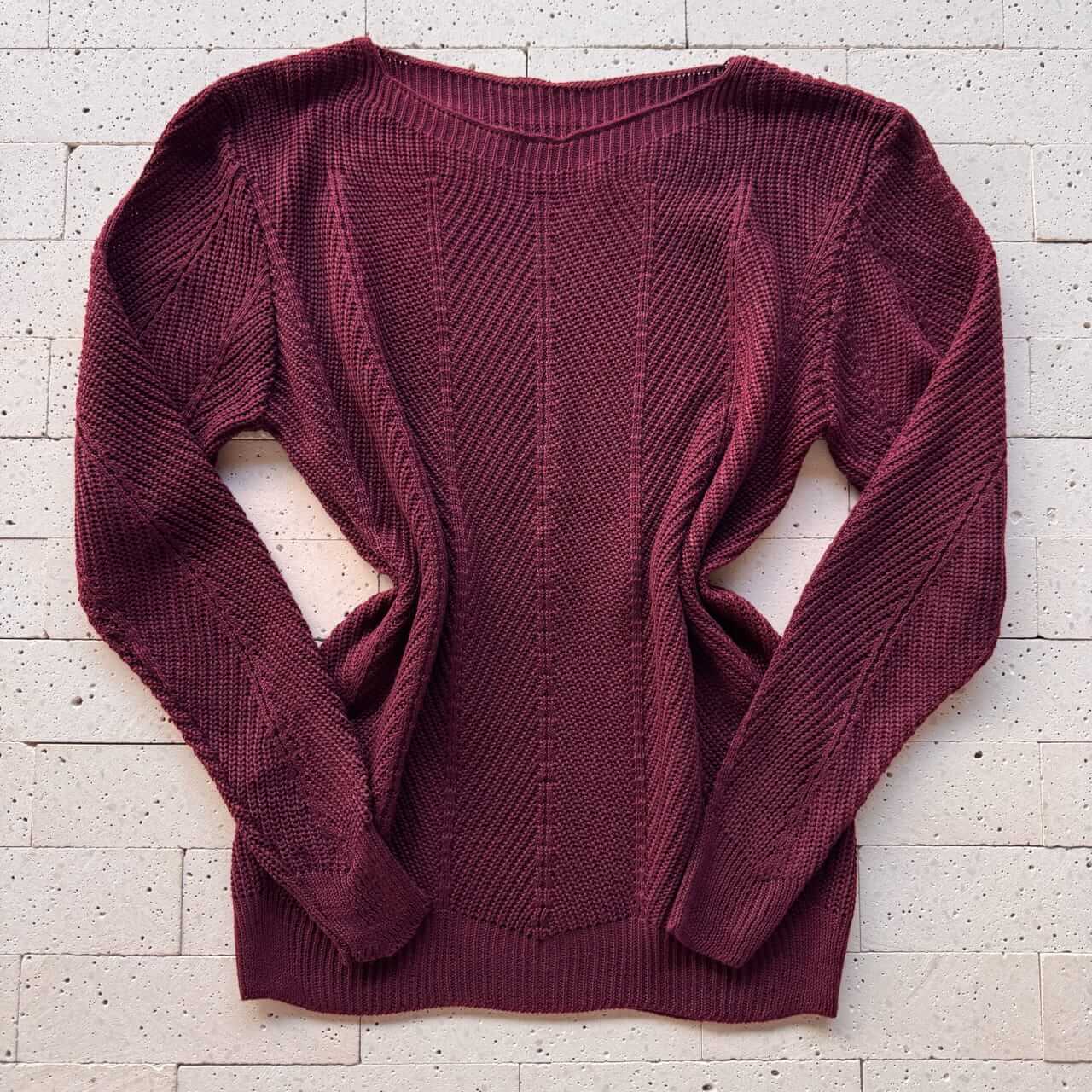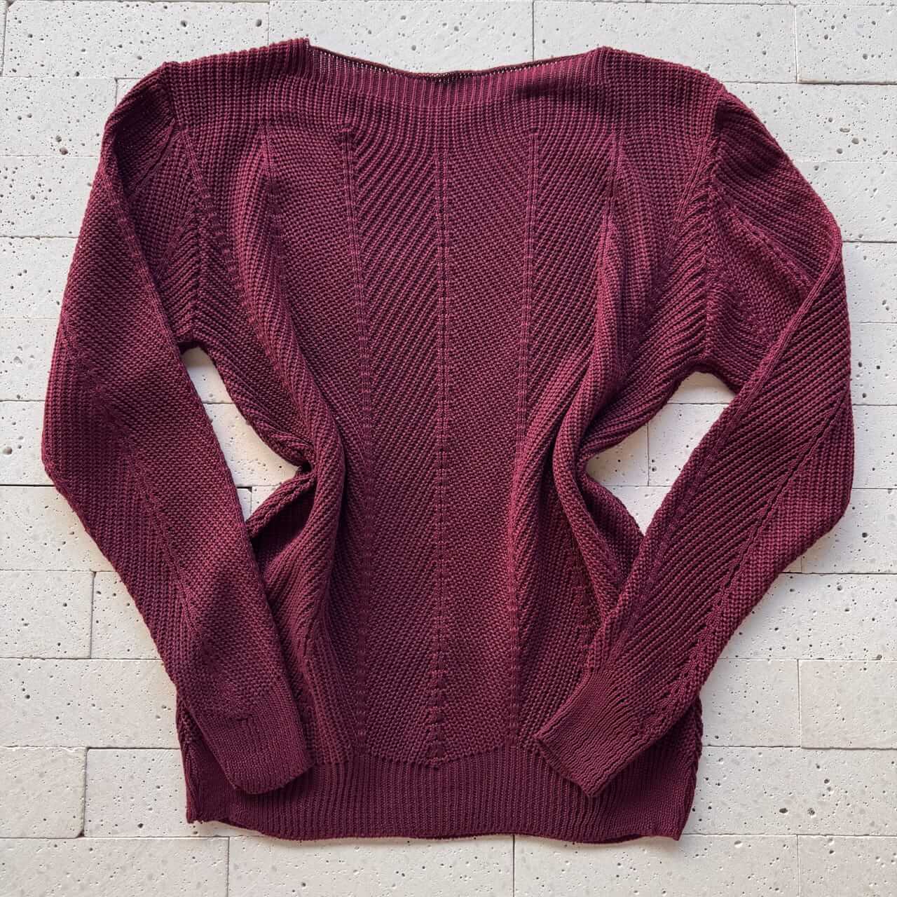 BLUSA TRICO COM VINCO E TRAMA DETALHADA VINHO