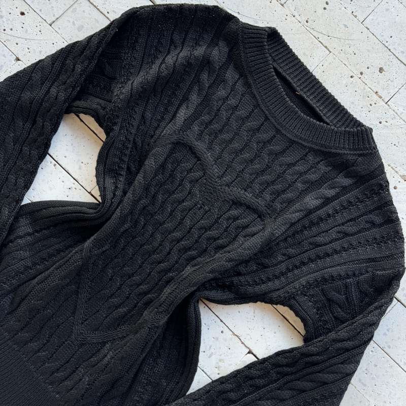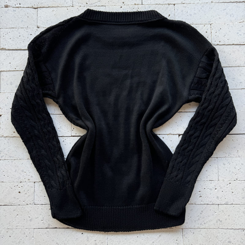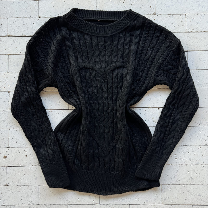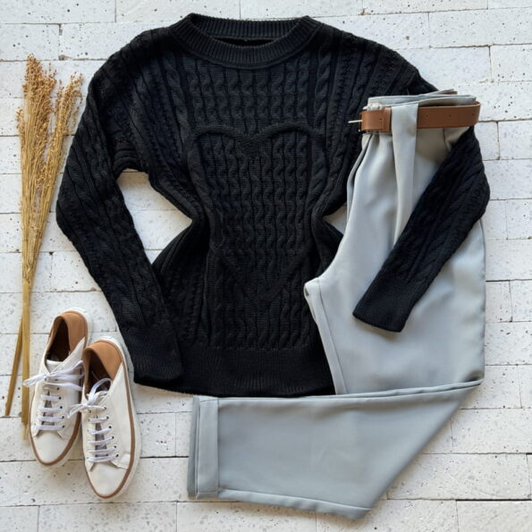 BLUSA TRICO CORAÇÃO DETALHE TRAMA ONDULADA PRETO