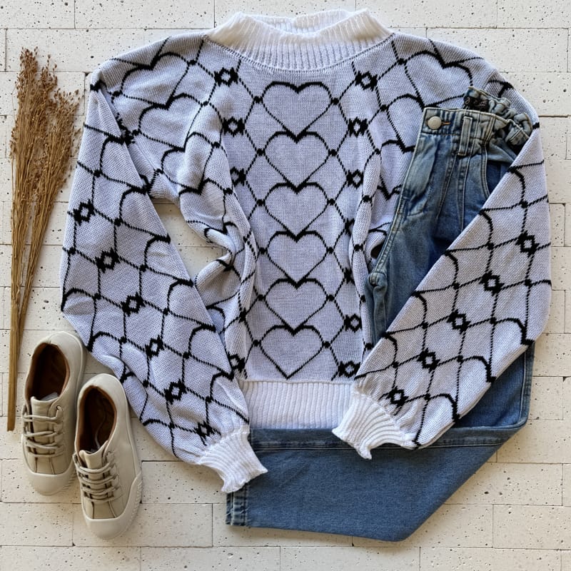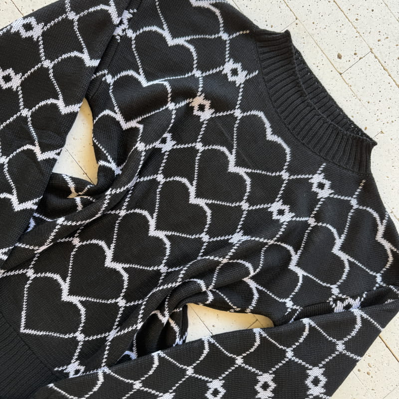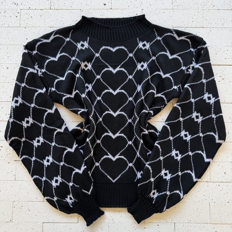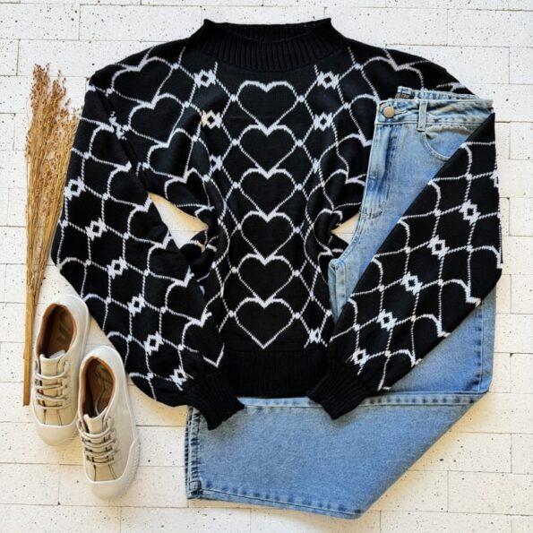 🛍 Garanta já a sua BLUSA TRICÔ CORAÇÕES BICOLOR PRETA com Envio Rápido e a possibilidade de parcelamento em até 12x sem juros!