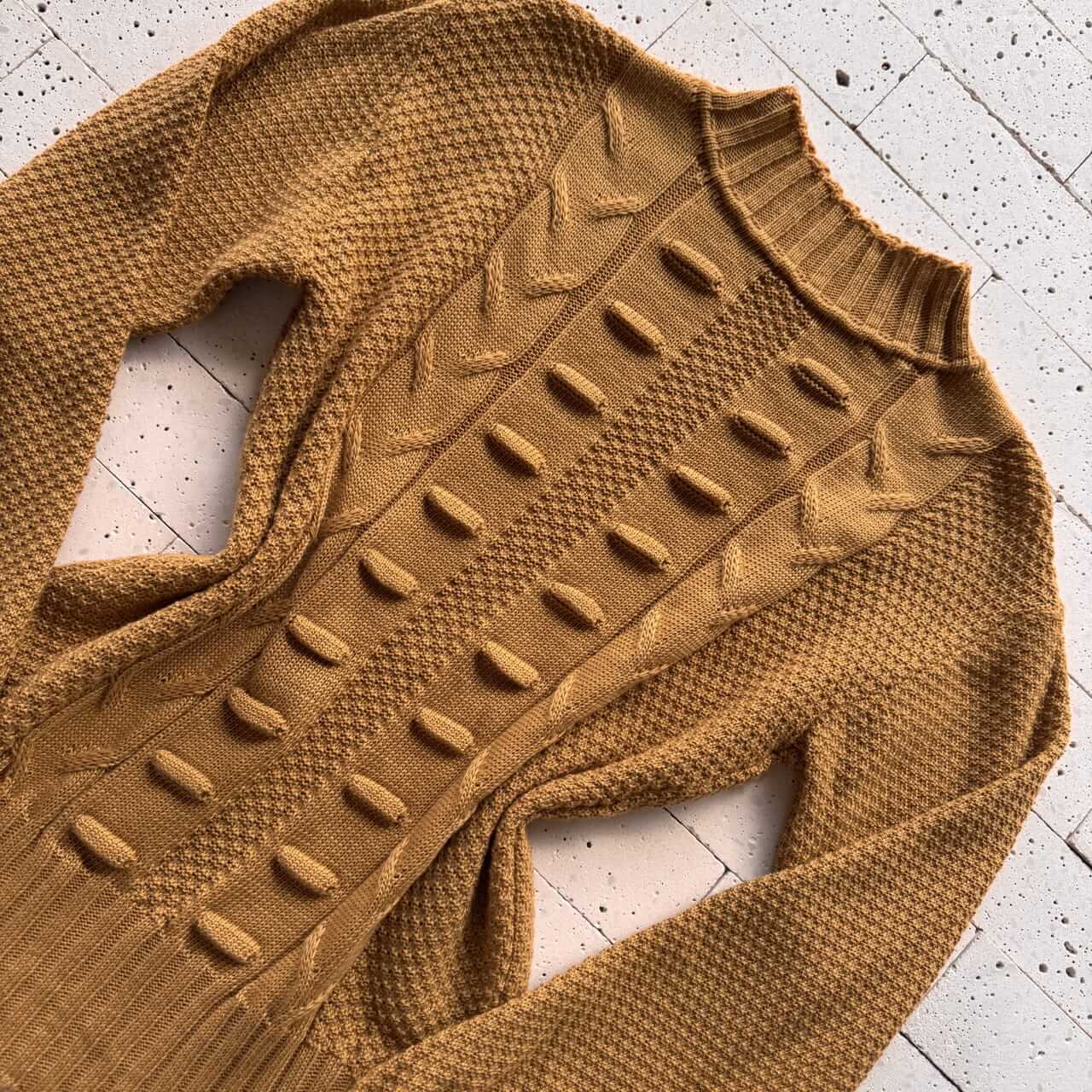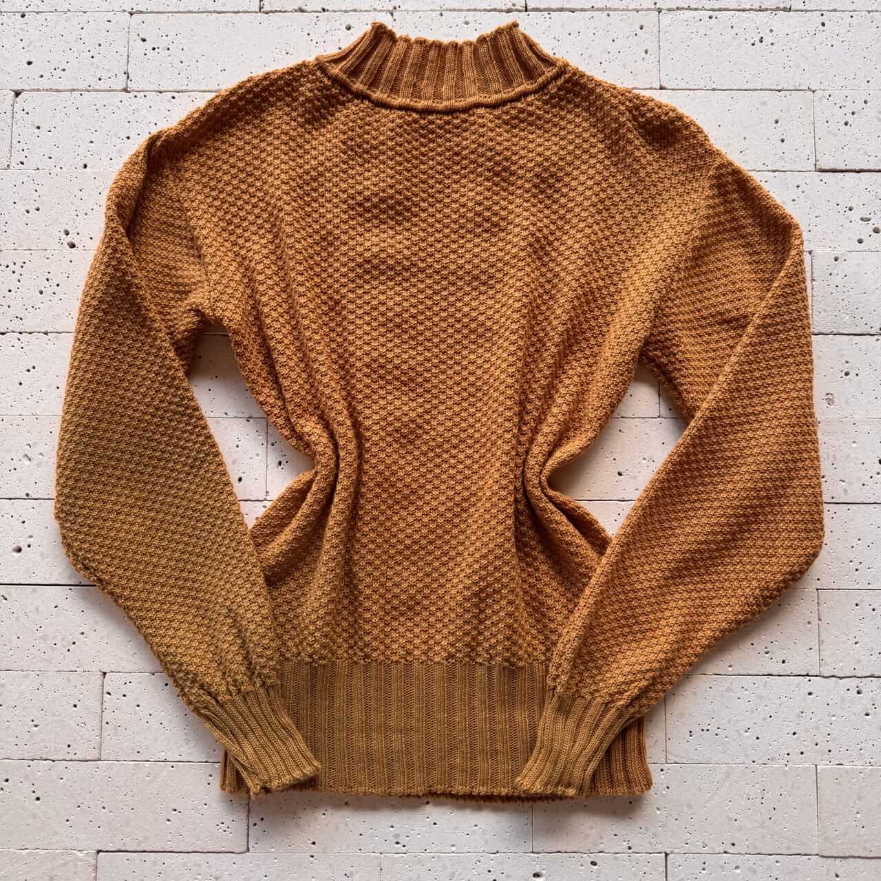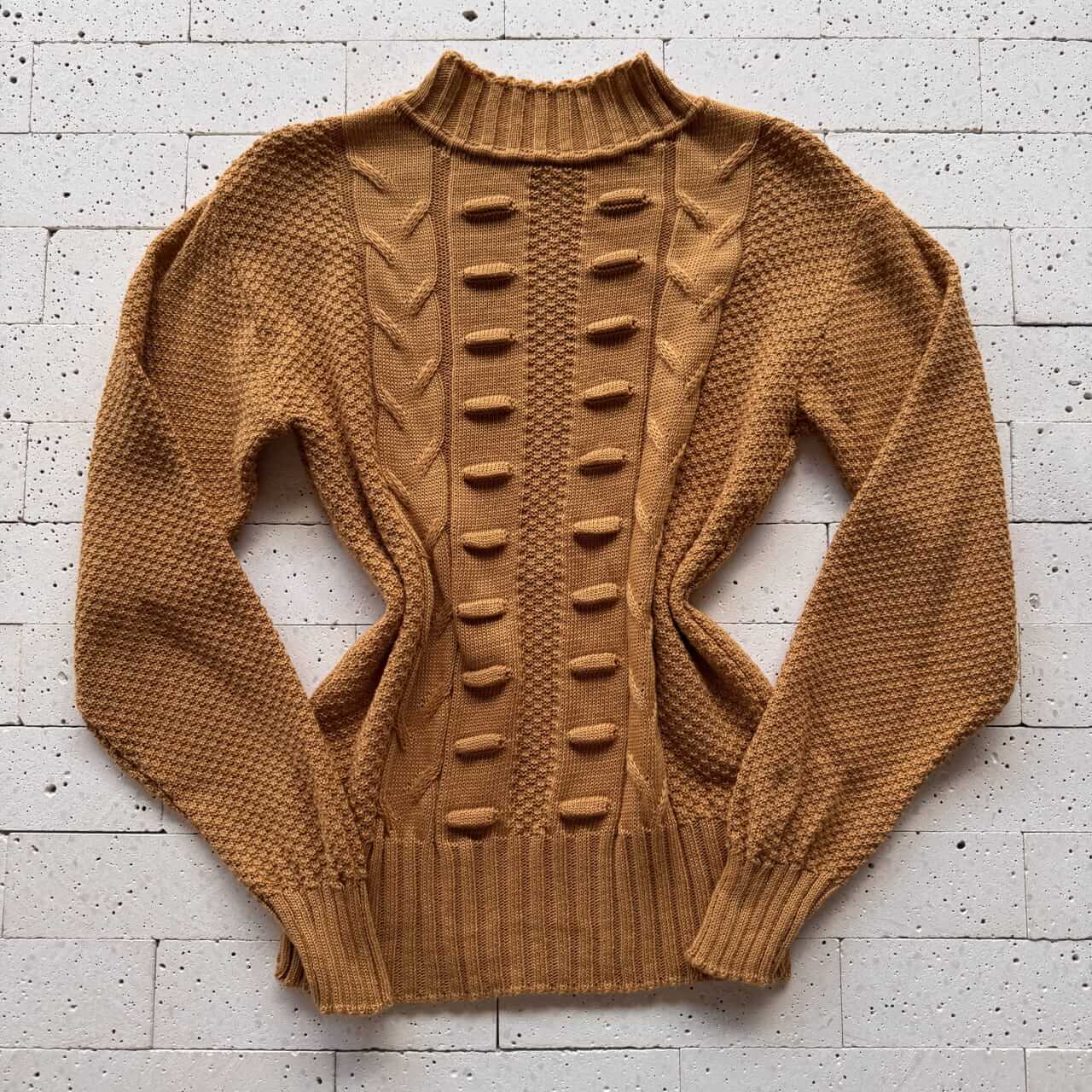 BLUSA TRICÔ DETALHADA COM BOLHAS FRONTAIS CARAMELO – Elegância Texturizada com Toque Aconchegante