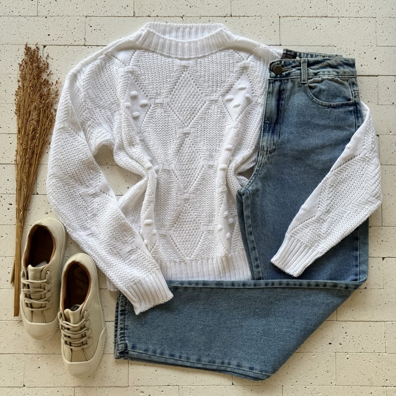 BLUSA TRICO DETALHE TRAMA COM BOLHAS OFF