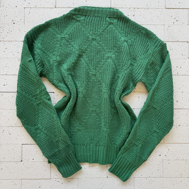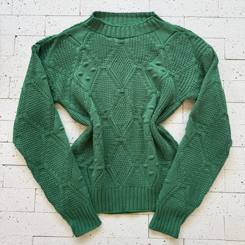 BLUSA TRICO DETALHE TRAMA COM BOLHAS VERDE