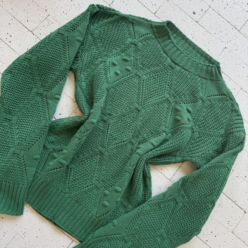 BLUSA TRICO DETALHE TRAMA COM BOLHAS VERDE – Design Texturizado com Estilo e Conforto