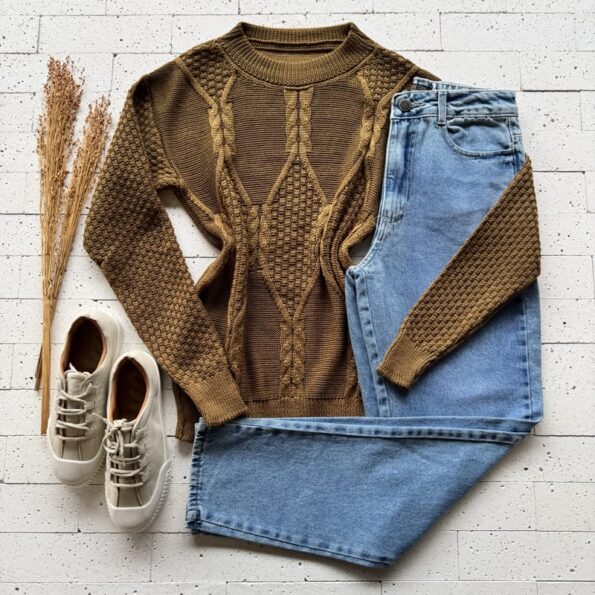 BLUSA TRICO DETALHE TRAMA LOSANGO LUXO MARROM – Textura e estilo para dias mais frios