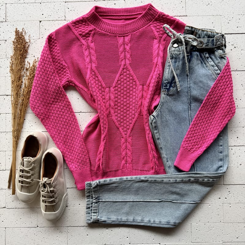 Com visual marcante e trama em alto-relevo, a BLUSA TRICO DETALHE TRAMA LOSANGO LUXO MARROM é ideal para quem busca sofisticação com conforto. A peça se destaca pelas texturas variadas: corpo com losangos centrais texturizados e tranças verticais, mangas com ponto trabalhado em relevo e gola redonda canelada que valoriza o acabamento. O tom marrom terroso proporciona um toque elegante e versátil, perfeito para looks de outono/inverno. Seu caimento ajustado se adapta com conforto ao corpo graças à elasticidade natural do tricot, vestindo bem do 36 ao 44.
