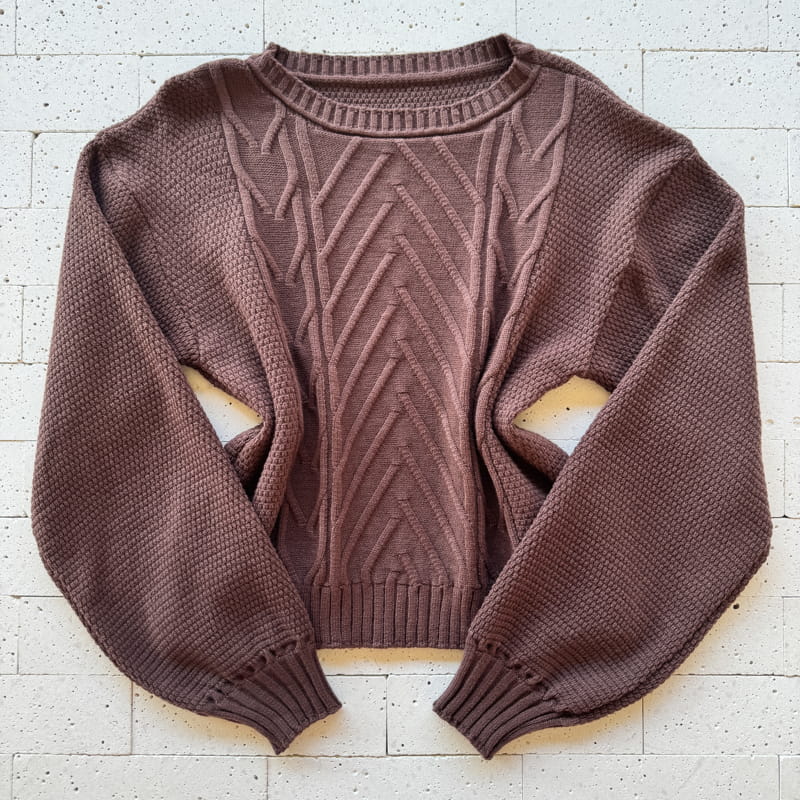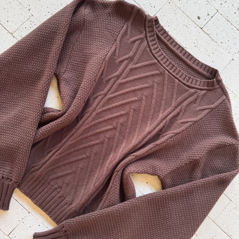 BLUSA TRICO DETALHE TRAMAS EM DIAGONAL CAFÉ – Sofisticação e textura no seu look de inverno