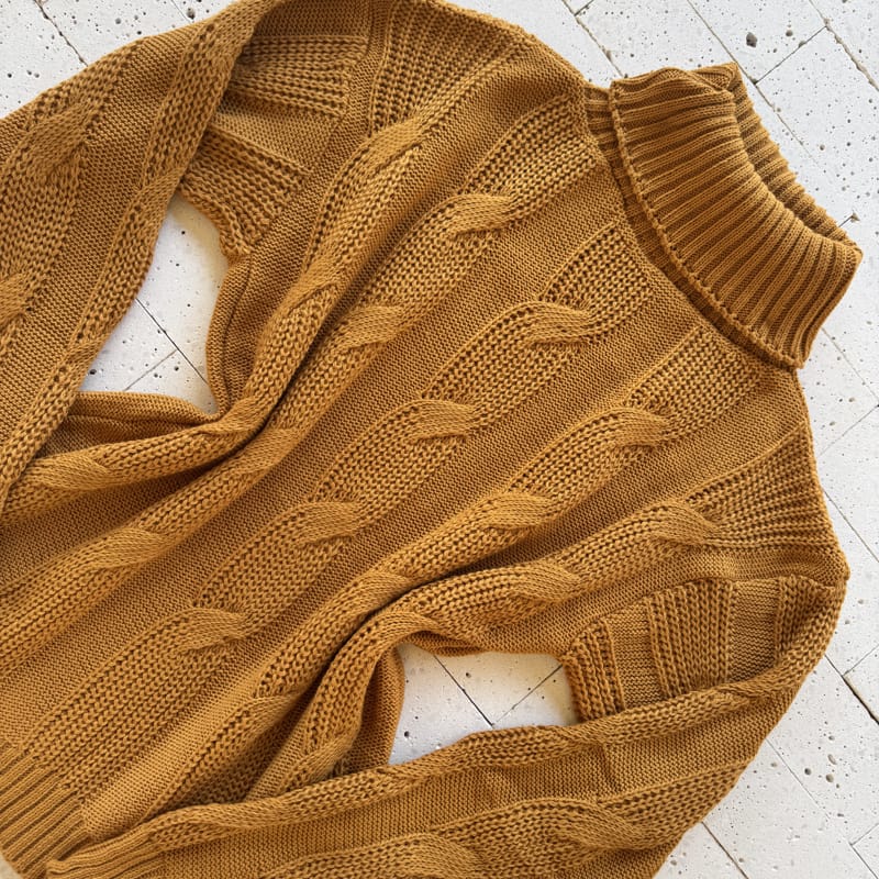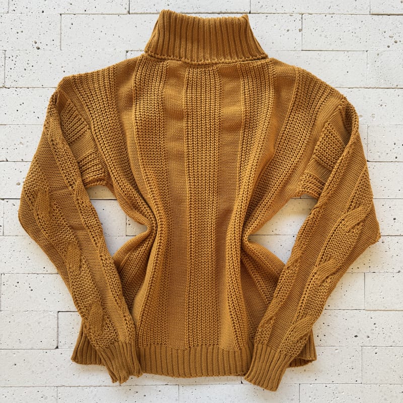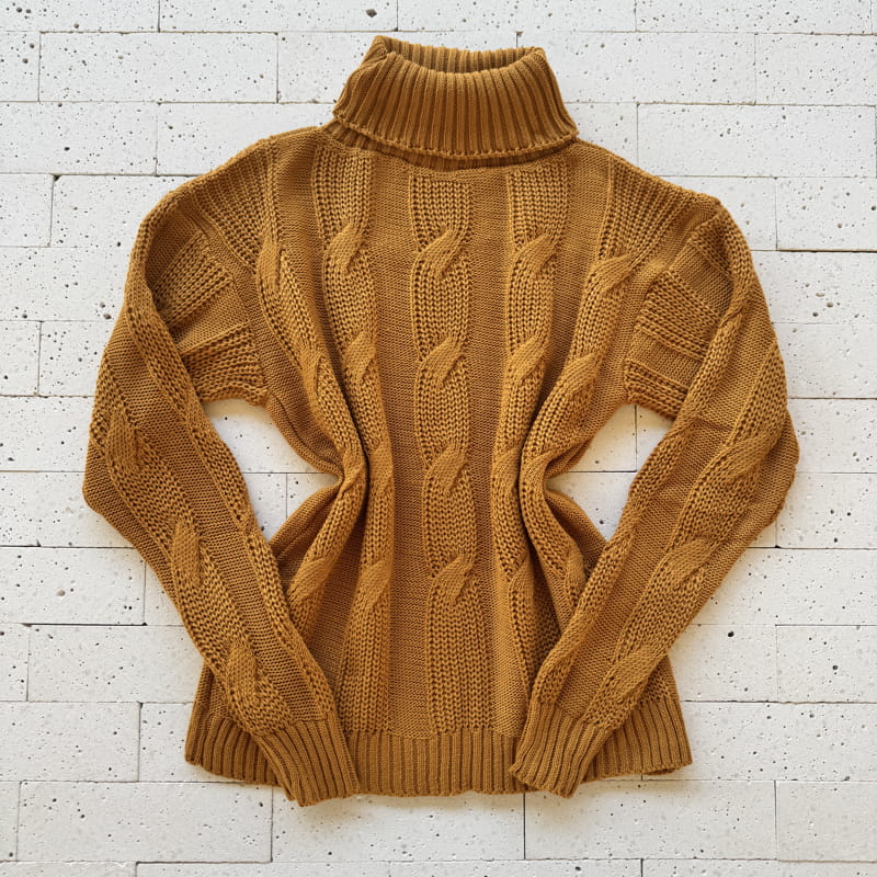 BLUSA TRICO GOLA ALTA COM TRAMA TORCIDA CARAMELO – Textura Imponente e Estilo Atemporal