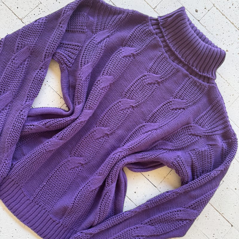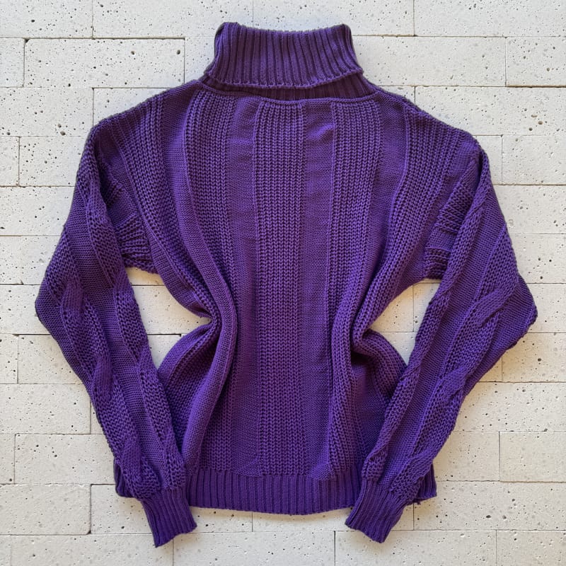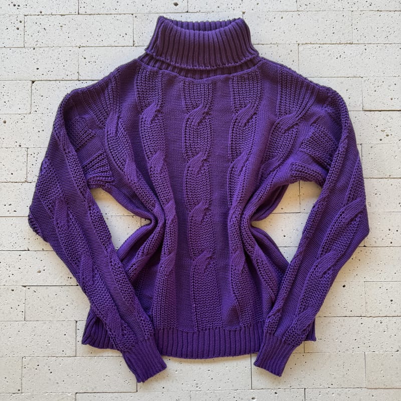 A blusa de tricô roxo com gola média alta traz um design sofisticado com tramas torcidas em relevo que valorizam o visual e adicionam textura ao look. O modelo possui excelente elasticidade e veste com conforto tamanhos do 36 ao 46. A gola média proporciona proteção ideal para os dias frios, enquanto o caimento soltinho e as mangas longas com punhos canelados garantem um toque moderno e acolhedor. Um essencial de inverno que une charme e versatilidade!