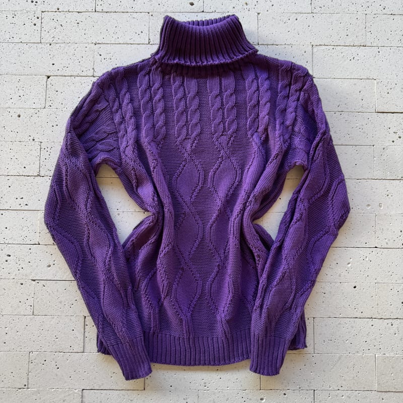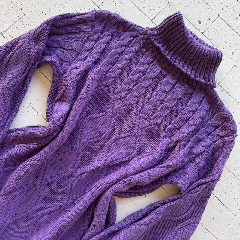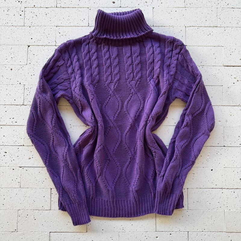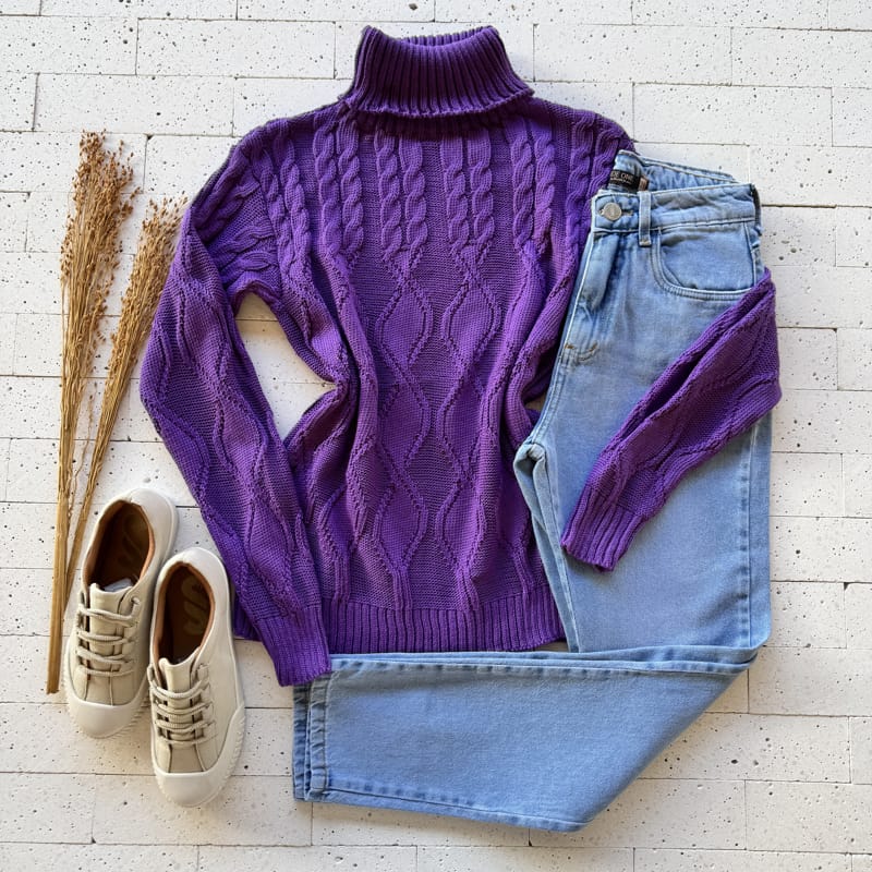 BLUSA TRICO GOLA ALTA TRAMA CORDAS E ONDULADO LUXO ROXO – Elegância e conforto em cada ponto