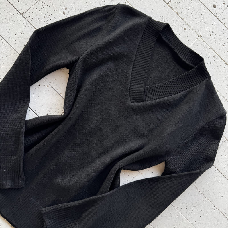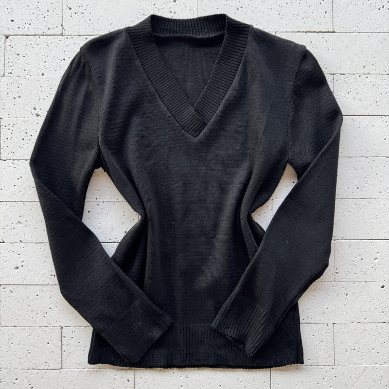 BLUSA TRICO GOLA V BÁSIC PRETA – Modelagem Básica e Versátil
