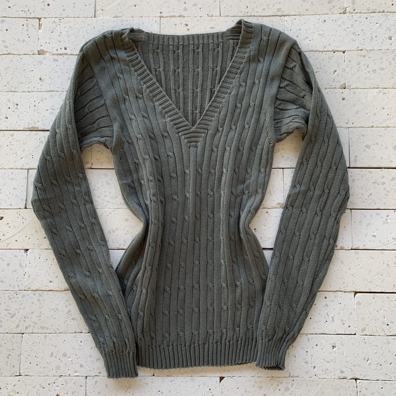 BLUSA TRICO GOLA V TRAMA CANELADA GRAFITE – Modernidade em Neutro Elegante