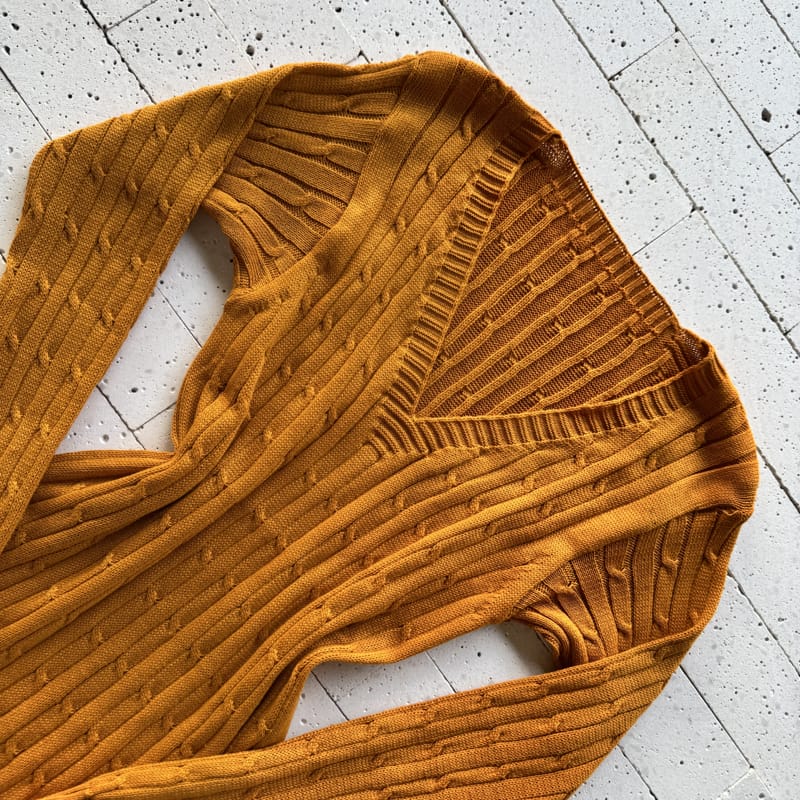 A Blusa Tricô Mostarda apresenta decote V profundo e trama canelada com pequenos nós em relevo, criando efeito vertical que afina a silhueta. O tricô leve abraça o corpo com elasticidade suave, garantindo conforto térmico e mobilidade. A cor mostarda ilumina produções do dia a dia e adiciona sofisticação aos looks de meia-estação.