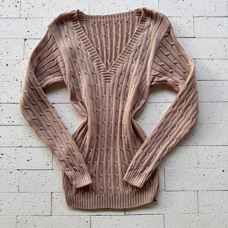BLUSA TRICO GOLA V TRAMA CANELADA ROSÊ – Delicadeza em Tom Neutro