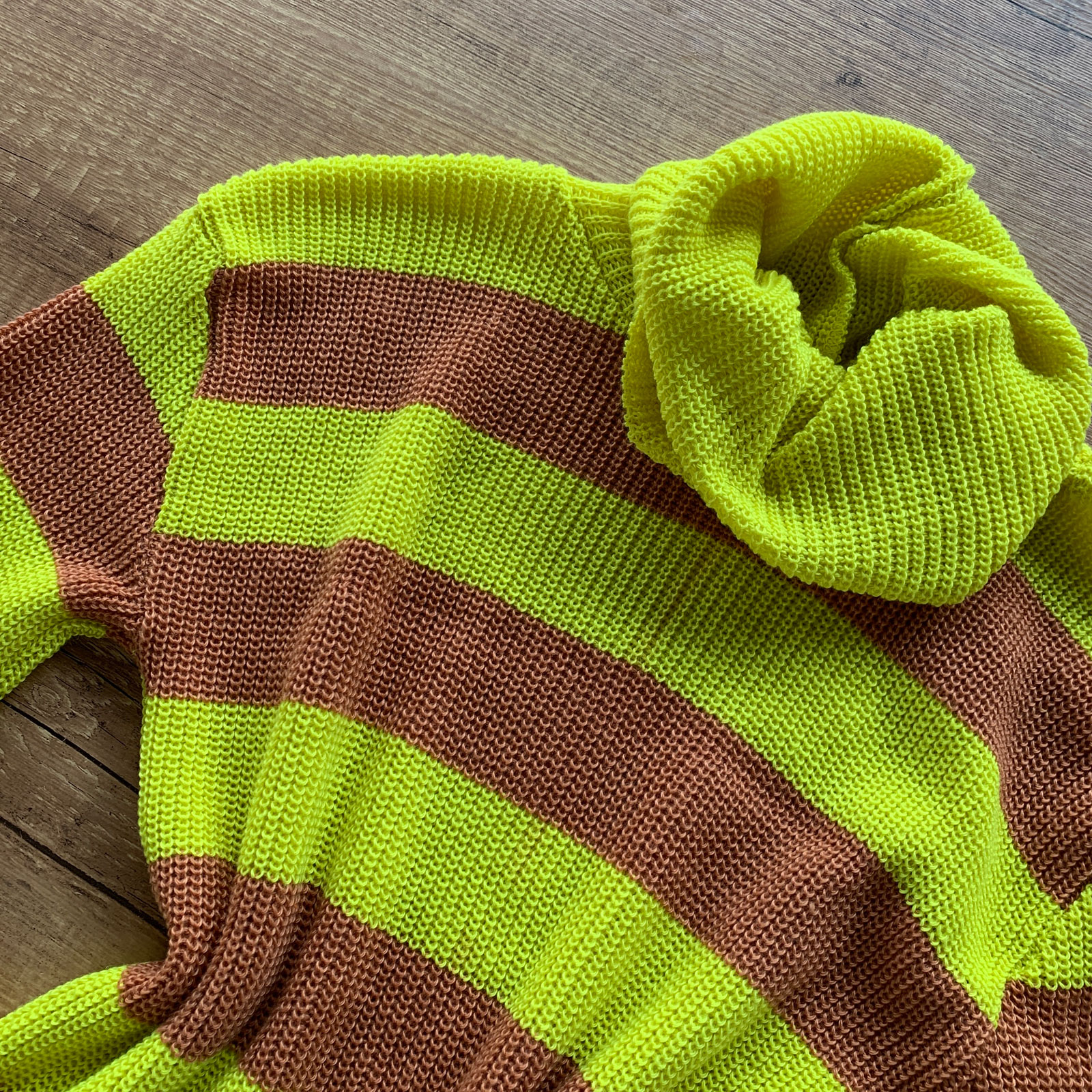 BLUSA TRICO LISTRADO GOLA BOBA LIMA E CARAMELO