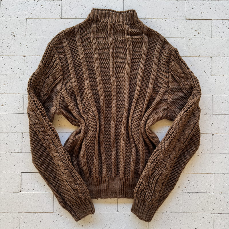 BLUSA TRICO MANGA LONGA COM TRAMA DIVERSAS MARROM