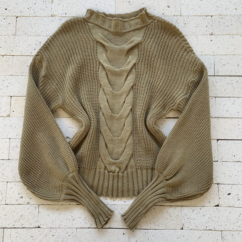 BLUSA TRICO MANGA OVERSIZED DETALHE FRONTAL NUDE