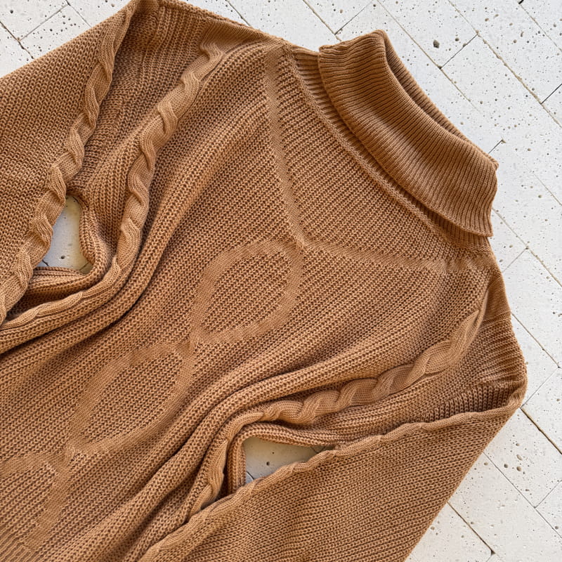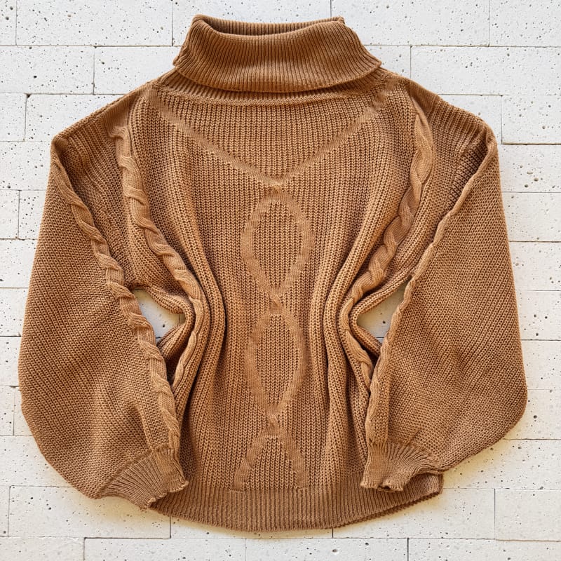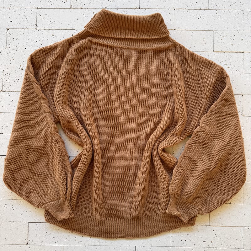 BLUSA TRICO MANGA OVERSIZED GOLA ALTA COM TRAMA FRONTAL NUDE – Elegância Confortável para os Dias Frios