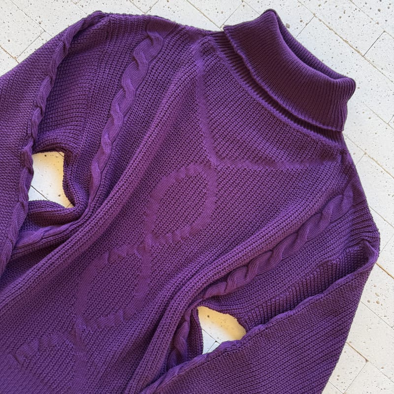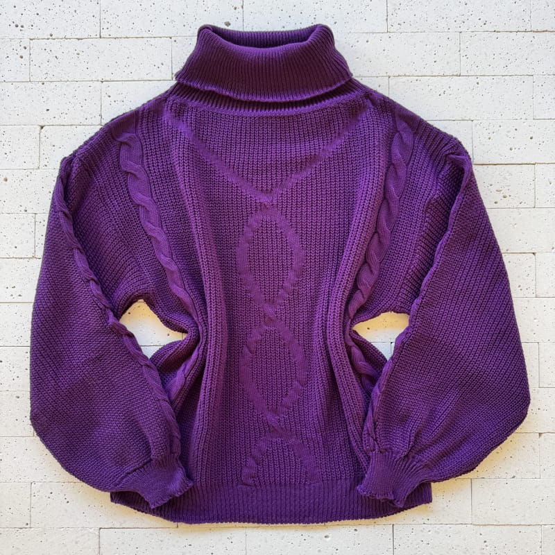 BLUSA TRICO MANGA OVERSIZED GOLA ALTA COM TRAMA FRONTAL ROXO – Conforto e Elegância no Inverno