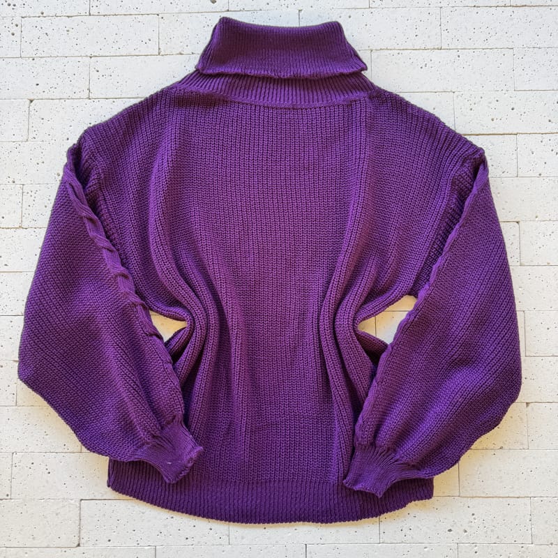 Como Usar o BLUSA TRICO MANGA OVERSIZED GOLA ALTA COM TRAMA FRONTAL ROXO