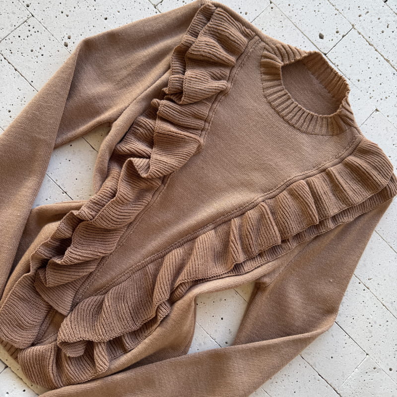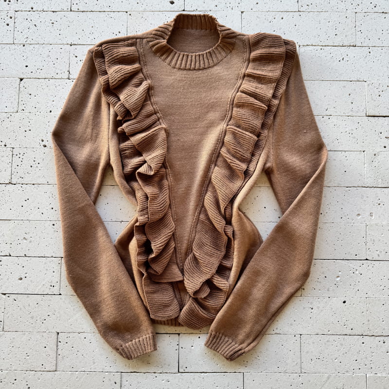 BLUSA TRICO MODAL COM BABADOS FRONTAL NUDE – Nude Sofisticado com Babados em Cascata