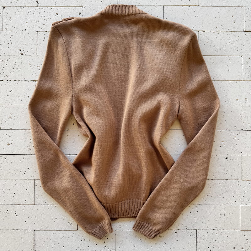 - Gola média, punhos e barra canelados para ajuste anatômico.