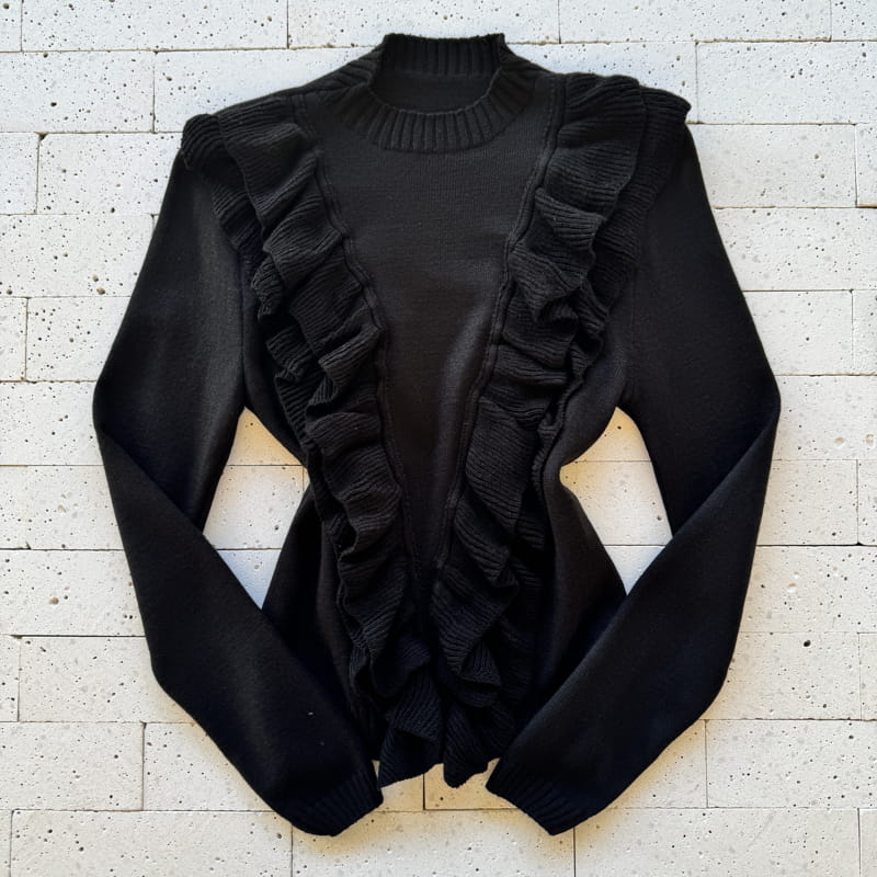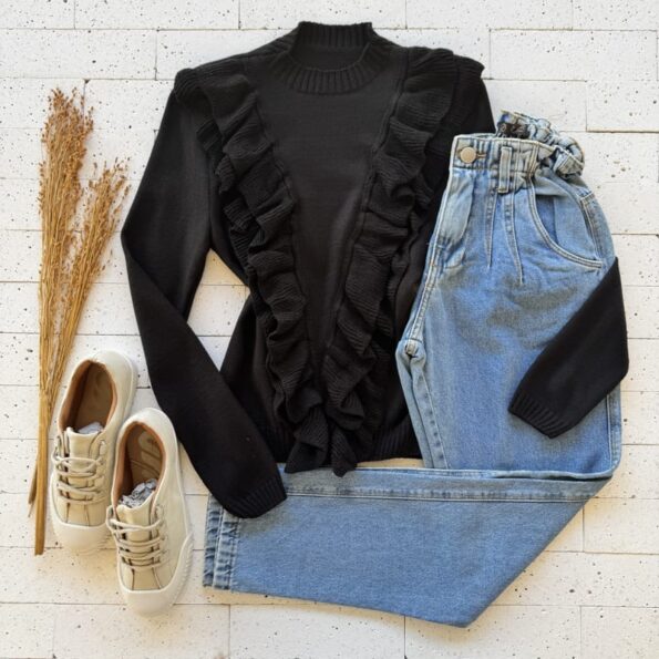 Garanta já sua Blusa Tricô Modal com Babados Frontal Preto com Envio Rápido e 12x sem juros!