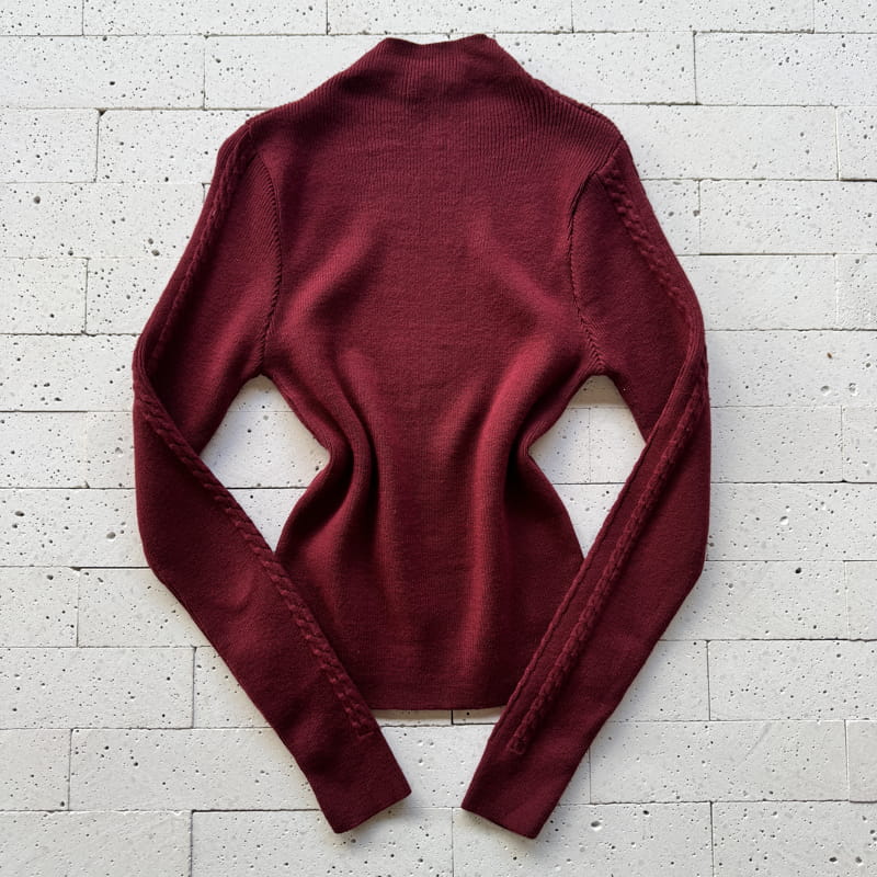 BLUSA TRICO MODAL DETALHE FRONTAL E MANGA COM TRAMA VINHO – Elegância com Caimento Ajustado